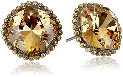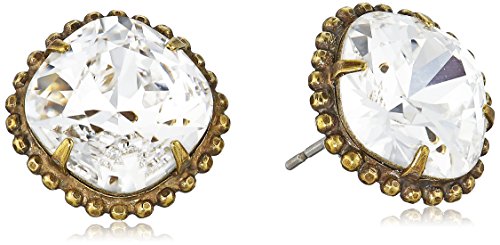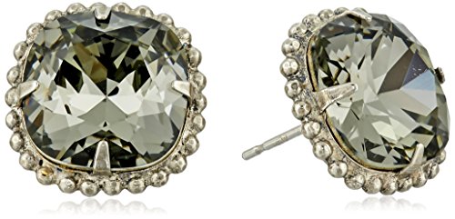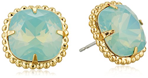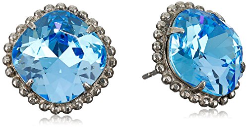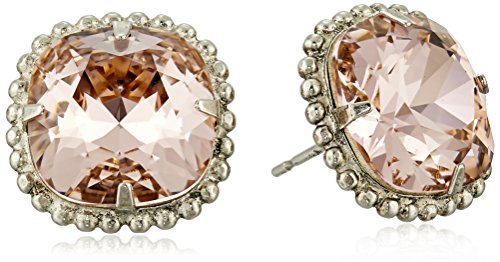 Handcrafted earrings featuring prong-set cushion-cut crystals in beaded metallic frames