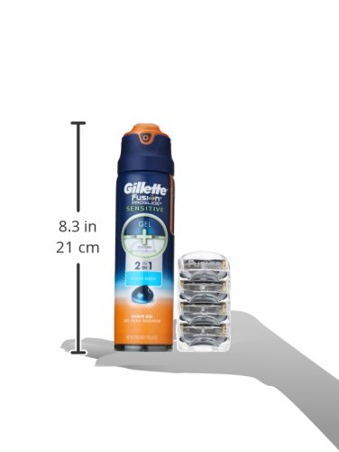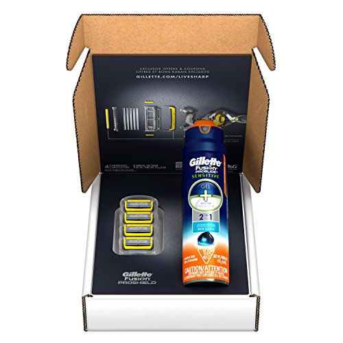 Gillette Fusion ProShield Men's Razor Blade Refills Plus Pro-Glide Sensitive Shave Kit, 4 Cartridge, 1 Shave Gel