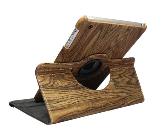 FOME Wood Grain 360 Degrees Rotating Folding Cover Protective Case for iPad Mini Red + A FOME Clean Cloth Gift