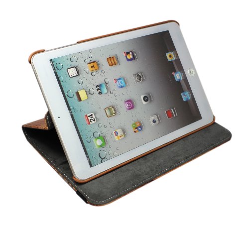 1X FOME Wood Grain 360 Degrees Rotating Folding Cover Protective Case for iPad Mini Red