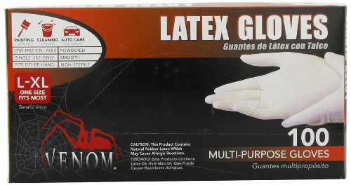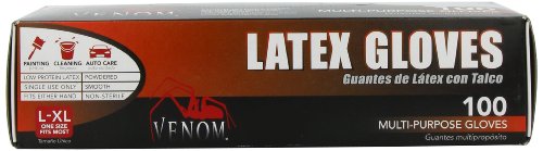 Product DescriptionVenom multi-purpose single use latex gloves. Great for painting, cleaning, and auto care. Large-x-large one size fits most. Contains natural latex.0