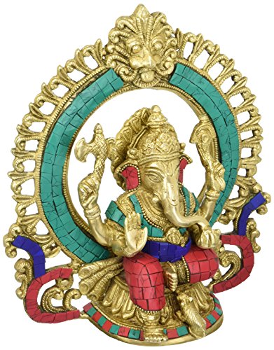 Turquoise Ganesh Plate with om and bells by Aakrati