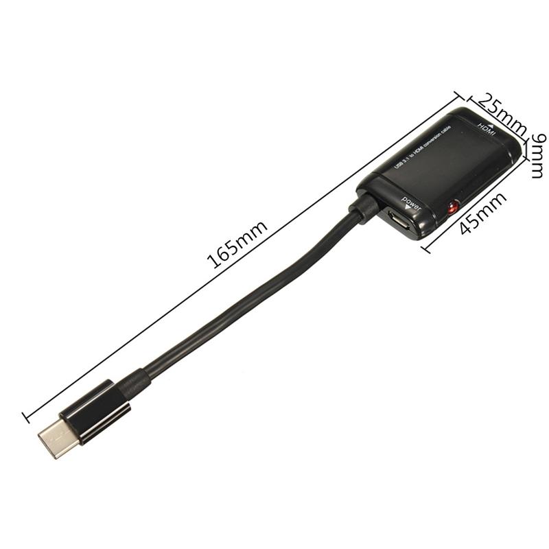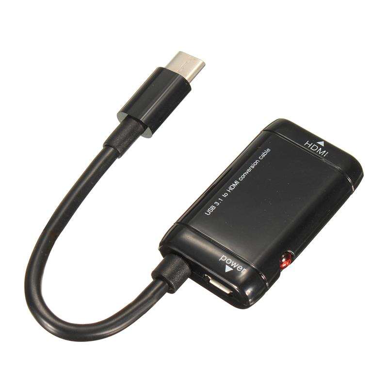 Specifications: 1.Working Temperature: - 20 ℃ to 65 ℃ 2.Relative humidity of 5% to 95%. 3.Input: USB 3.1 Type C 4.Output: HDMI 5.Material: ABS 6.Color:Black 7.Length:165mm