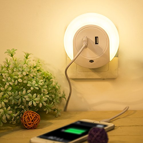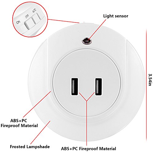 Just plug it in a wall outlet and enjoy its convenience for charging two device simultaneously and soothing warm light automatically emitted in darkness.