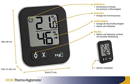 La Crosse Technology 30.5026.01 Moxx Digital Thermo-Hygrometer with Comfort Icon, Black