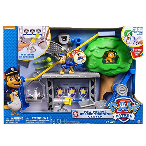 -. Feature : The Paw Patrol Rescue Training Center is the ultimate training ground to keep the Paw Patrol ready for any type of rescue! / Chase is on the case and keeping his K9 skills sharp with tennis ball target practice, zip line rides and tree rescues! / The Paw Patrol Rescue Training Center comes with push button Chase, Kitty and Chickaletta figures! / The Paw Patrol Rescue Training Center is for children 3+. No Batteries Required! / Includes: 1 Paw Patrol Rescue Center, 3 Figures, 1 Zip Line Basket, 1 Crane, 1 Launcher, 2 Balls, 1 Instruction Sheet