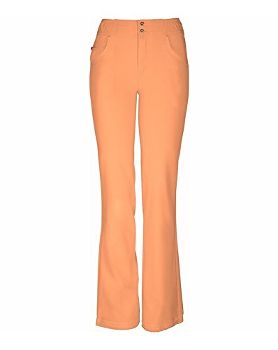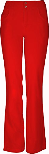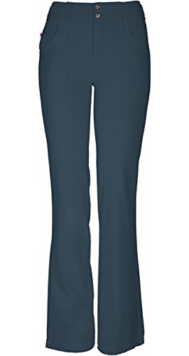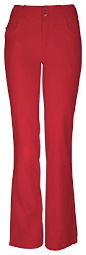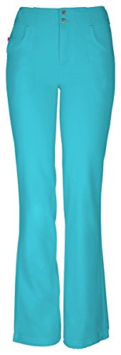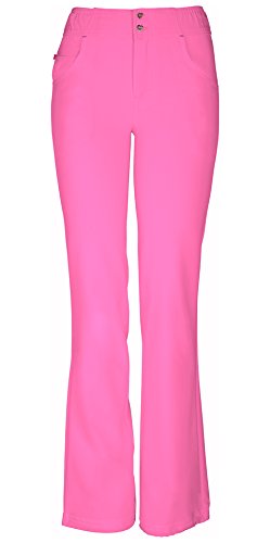 The HeartSoul 20181 Enchanted low-rise, straight leg pant features continuous drawcord at the hem to shorten or slim down the leg opening, functional button front closure with heart-shaped gold logo buttons, elastic at the waist that wraps from the front to the back, zig-zag and double needle topstitching details. Also featured are Pink bar tacks, front pockets, and a small interior pocket with Pink zipper closure. Inseam: 31 1/2-in.Feature