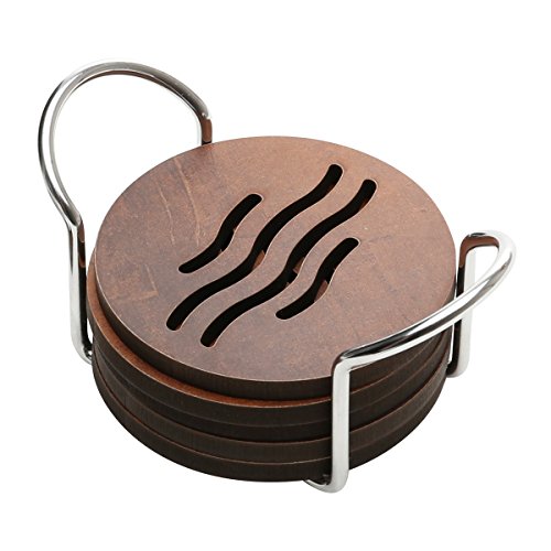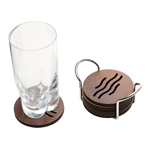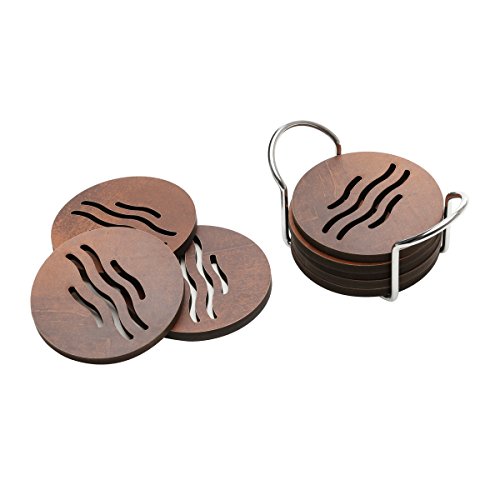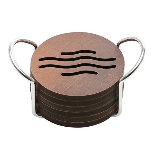 WoodArt Wooden Coasters 6 pieces and Metal Support (Dark Wood)