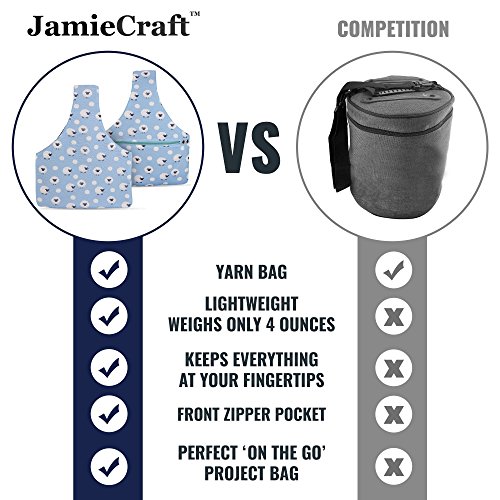 STAY ORGANIZED – The yarn bag has 4 reinforced grommets to keep yarn from tangling. This project bag features a big external zipper pocket that can hold crochet hooks, knitting needles, scissors, or other supplies. Bag is big enough to comfortably fit 2 yarn balls or one big skein.