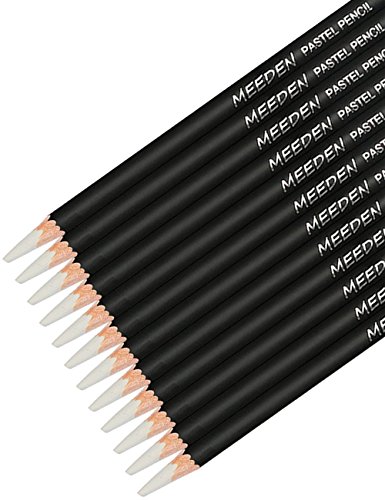 MEEDEN Pastel White Pencils Soft 5.0 mm Core for Blending Mixing Fine Detail Work 12 PCS Artist's Sketching Pencils Set