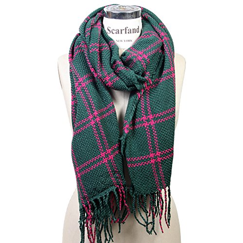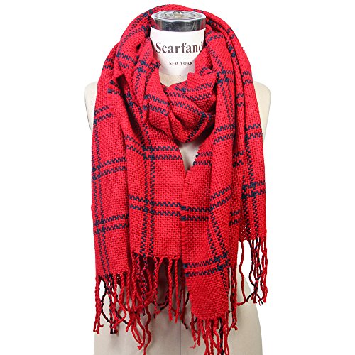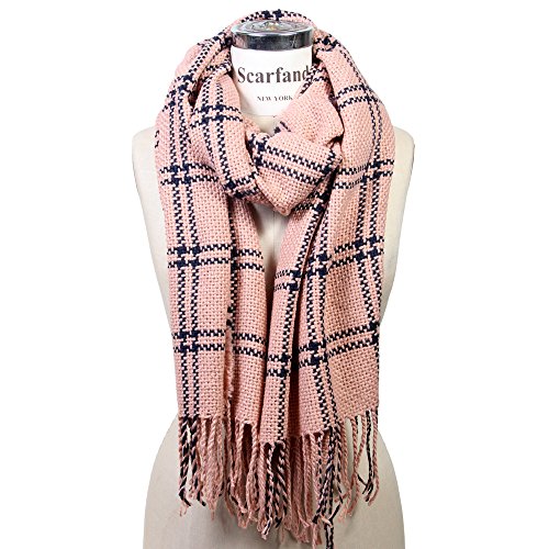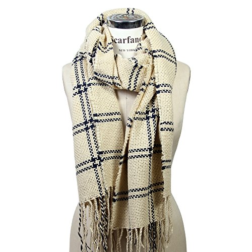Scarfand Fringed Grid Pattern Knit Winter Scarf Wrap Shawl