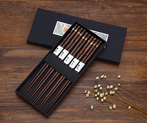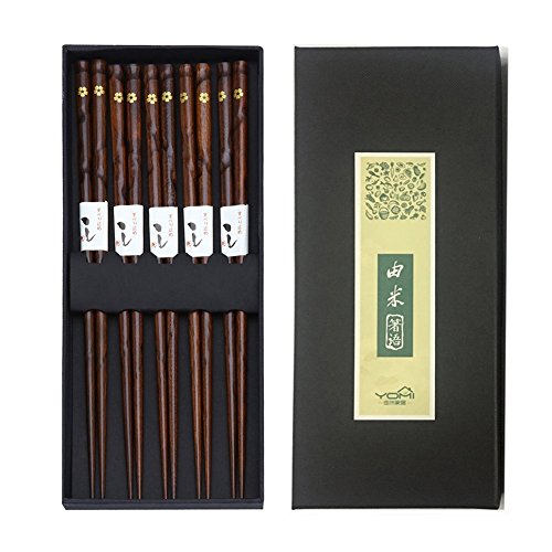 Youmi Japanese Natural Wood Chopstick Set Reusable Classic Style Chopsticks 5 Pairs Gift Set