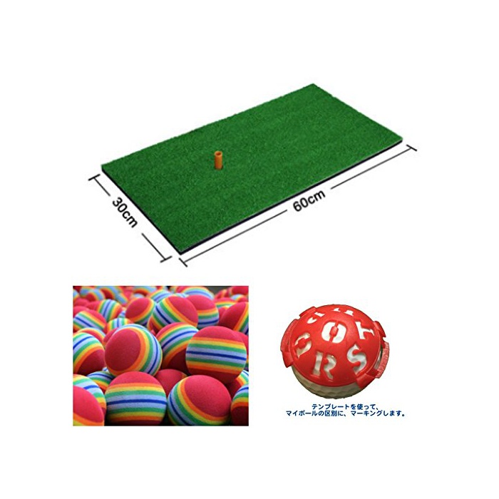 원본상품명: ゴルフ 室? ショット 練習 ボ?ル マット 幅 30cm 長さ 60cm セット マ?カ? テンプレ?ト 付き (赤)