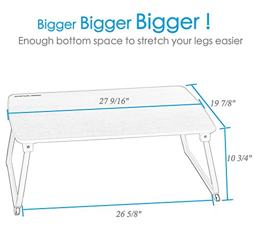 -. Feature : BIGGER THAN BIGGER - With a large tabletop size: 27 9/16"L x 19 7/8"W, perfectly fit all size laptops with a keyboard and mouse space. Plenty of room at the sides for your mouse to move, elbows to rest as well as a underneath room for legs to stretch - It's a smart choice! / MULTIPUPOSE TABLE - As a laptop desk for bed/couch for a relaxing workspace, as a standing desk at office to release from sitting time, as a writing/drawing desk for a spacious space, as a camping table for outdoor activities, or as a breakfast serving tray in bed for lazy mornings - It will certainly satisfy you! / HEALTHIER WORKING - Use this table on a regular height desk and stand up to work instead of sitting at the keyboard for hours, it will help with alleviate neck and back pain / STABLE & DURABLE - This laptop table is lightweight, but sturdy. The feet have a non-slip grip that will not budge at all, and locking "U" structure joints provide good stability. Max. load up to 80 lbs without slippage or deformation / CONSIDERATE DESIGN - This bed table has a little lip all around the edges. It could help prevent scratches and look better