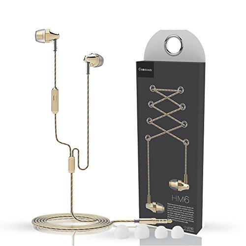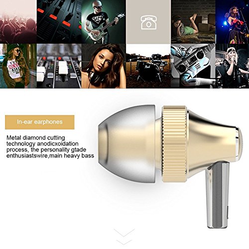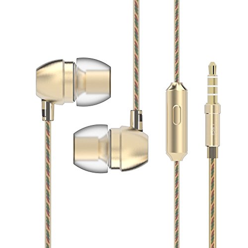 Headphones, Super Bass In-Ear Headphone with Mic, Wired Headset Earbuds Stereo & Remote Control Noise Reduction for Sports Running (Gold)