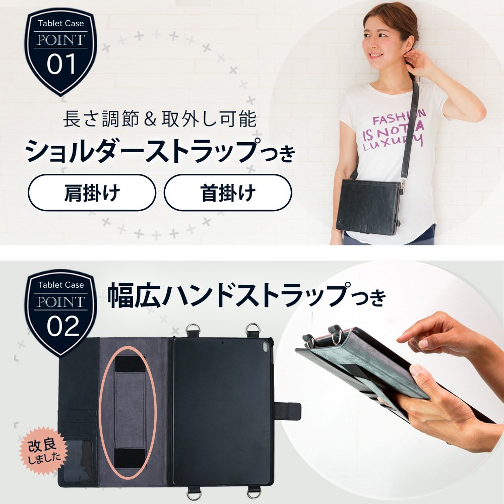 With a shoulder strap with a convenient pen holder that can store a touch pen and ballpoint pen