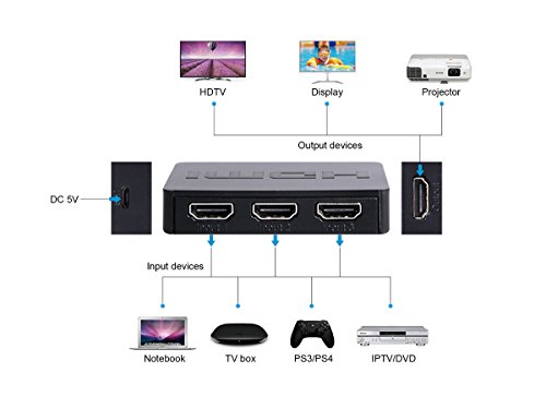 Onlier HDMI Switcher Hub Support AWG 26 HDMI standard cable,Input up to 15 metres ,output up to 25 metres Onlier 3 Port HDMI Splitter is easy to instal