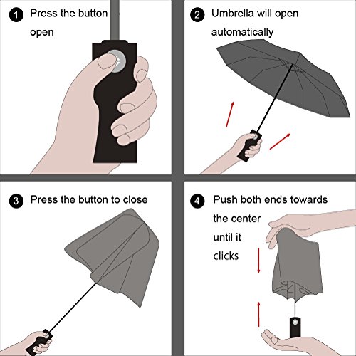 Automatic Folding Umbrella,AuroTrends 10-Rib Strong Steel Windproof Frame Rain Umbrella durable...