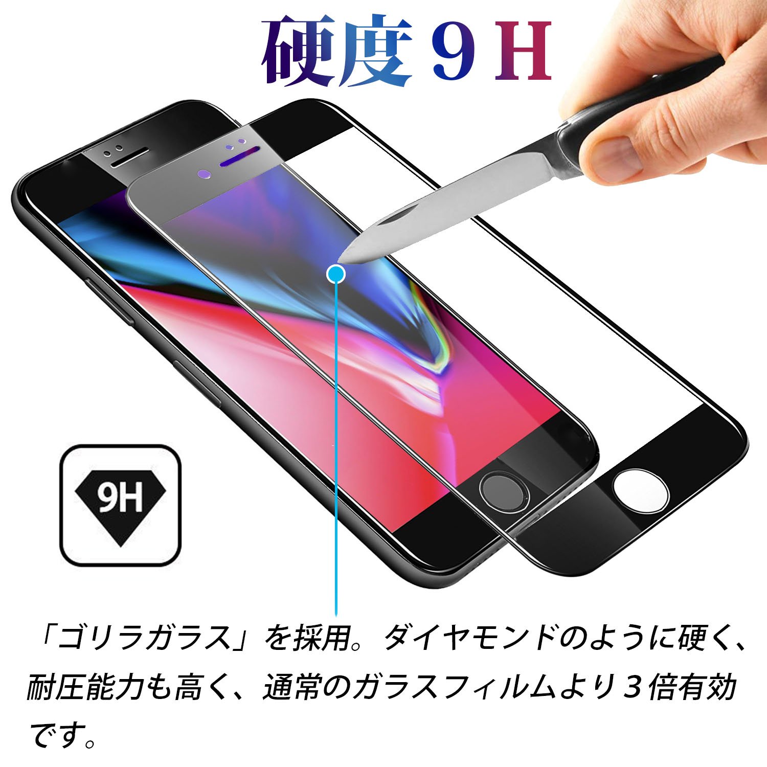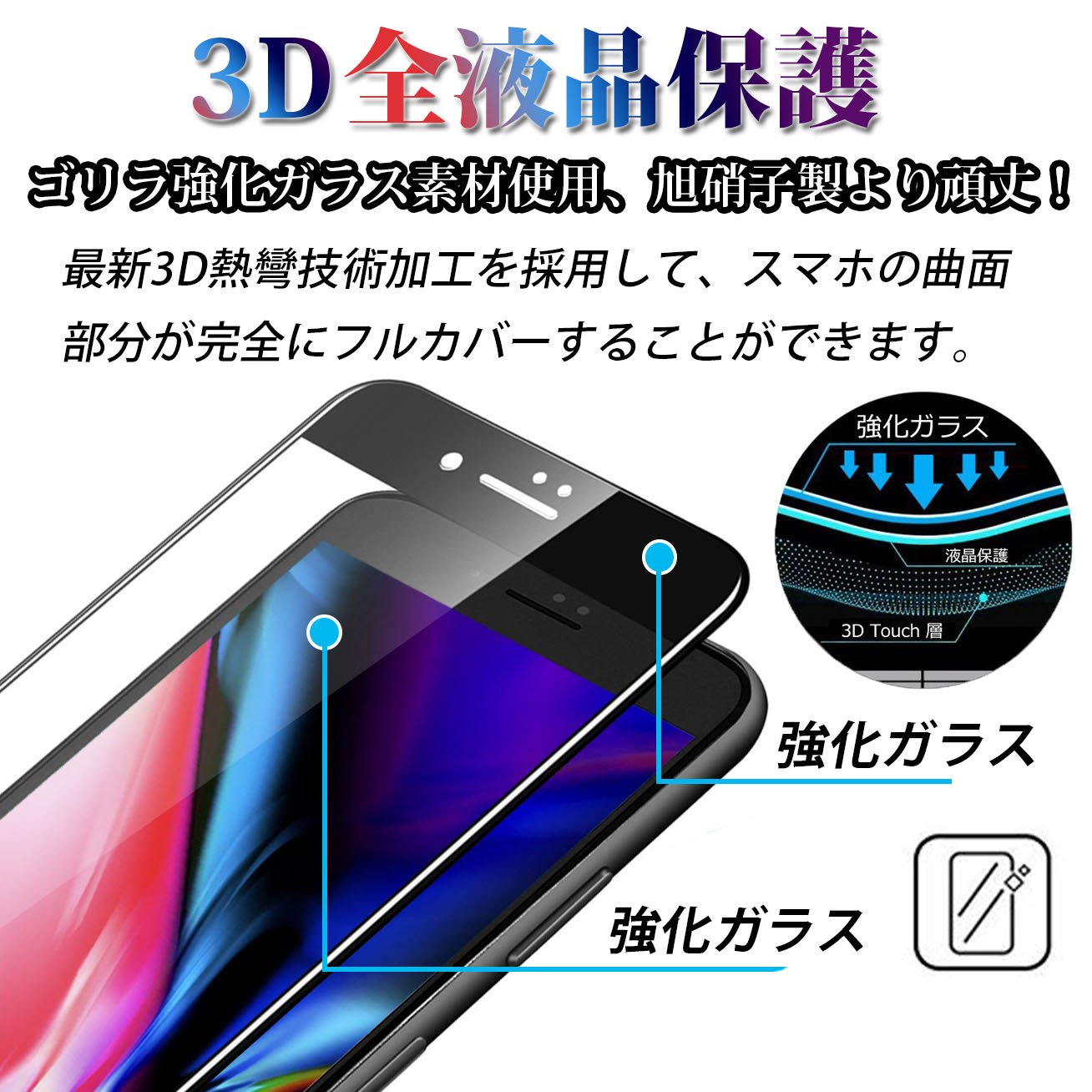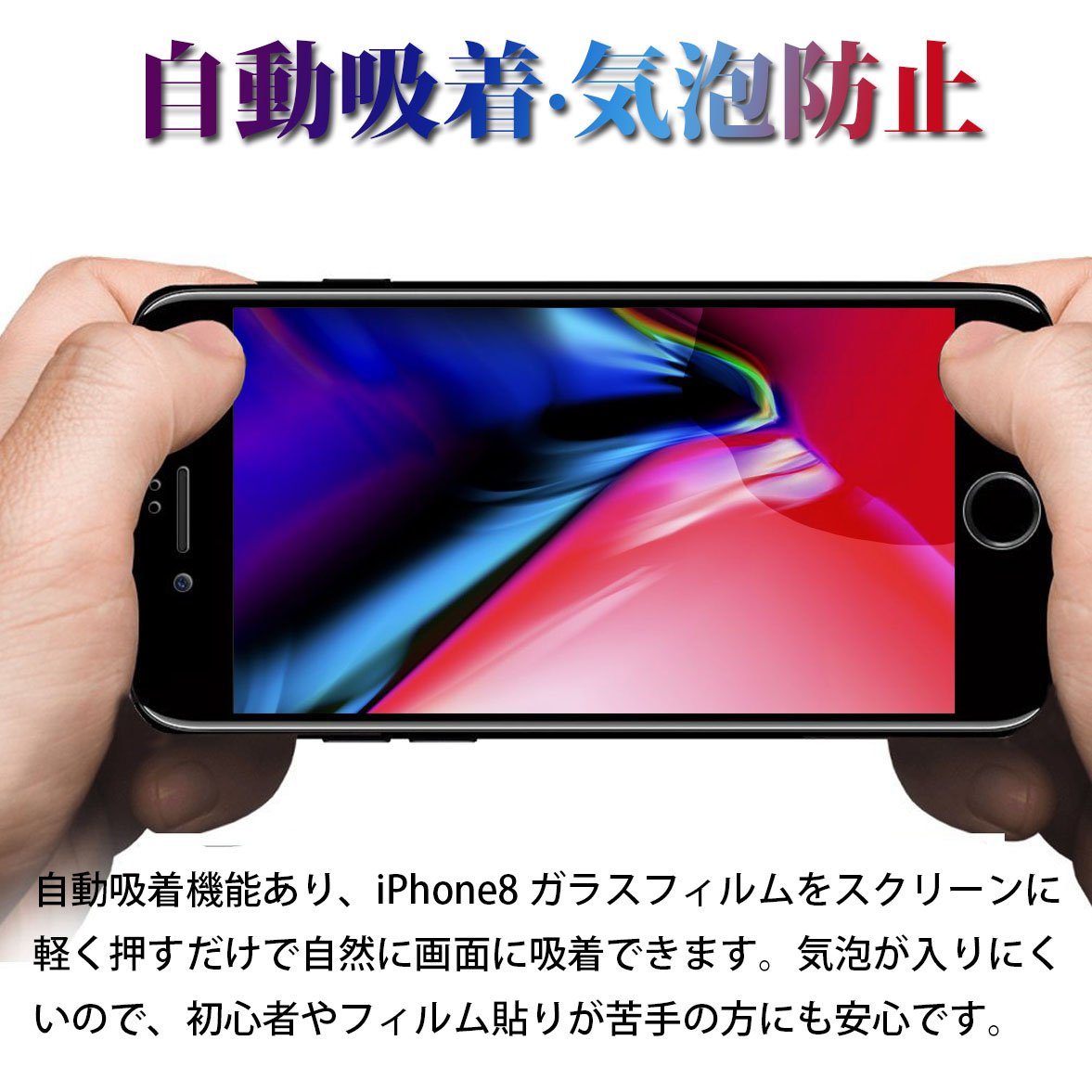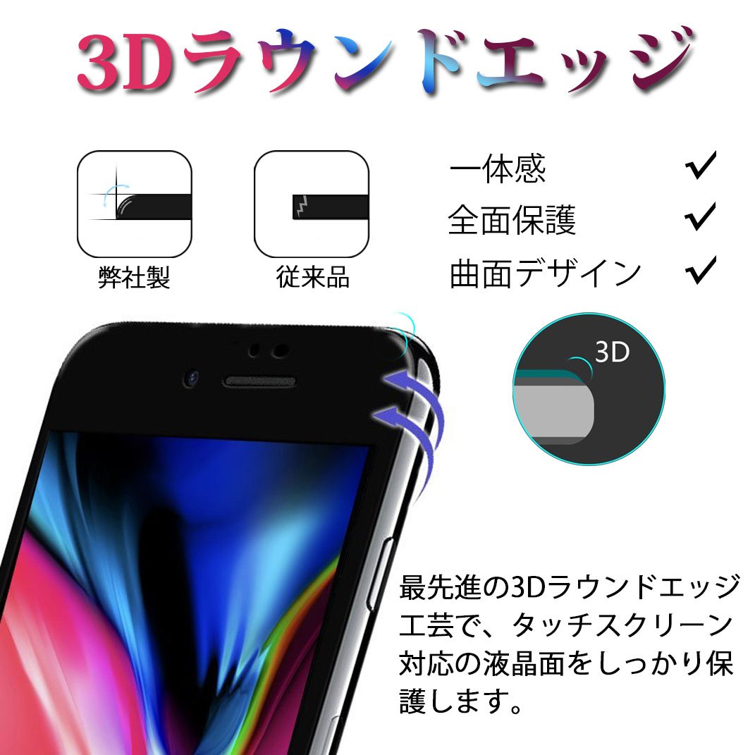 iPhone 8 Glass Film, SAKUTON 2018 Version Design Strongest Hardness 9H 3D Full Protection Gorilla Enhanced Glass 3D Loud Edge Fingerprint Verifiable iPhone 8 Film Two Color Selection [Black]