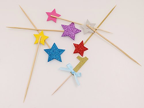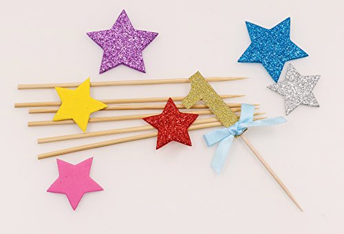 1st First Birthday Cake Topper 1 Decoration and Twinkle Stars Bling Glitter Sparkle Colorful DIY Stars Party Cake Cupcake Decorations Toppers Star 6 Pack Set Single Sided Colorful Glitter