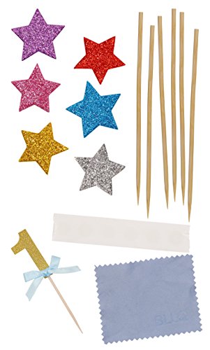 Package includes: “1” Shape cupcake topper 1 pcs, L Size (1.5 x1.5 inch) Stars DIY toppers decorations 2 PCS , S Size (1.2 x1.2 inch) Stars DIY toppers decorations 4 PCS ,Blue cleaning cloth with BLLQ LOGO 1 pcs.