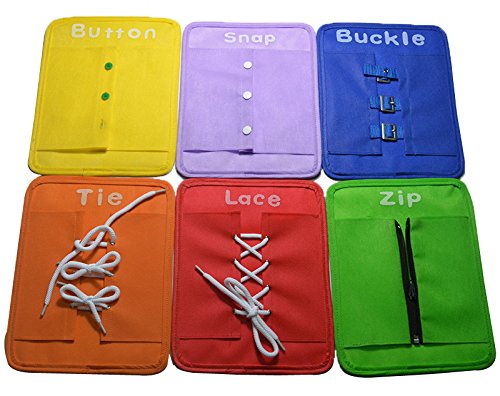 -. Title : Yoovi Early Learning Basic Life Skills Learn to Dress Boards - Zip, Snap, Button, Buckle, Lace & Tie 6 pcs/set