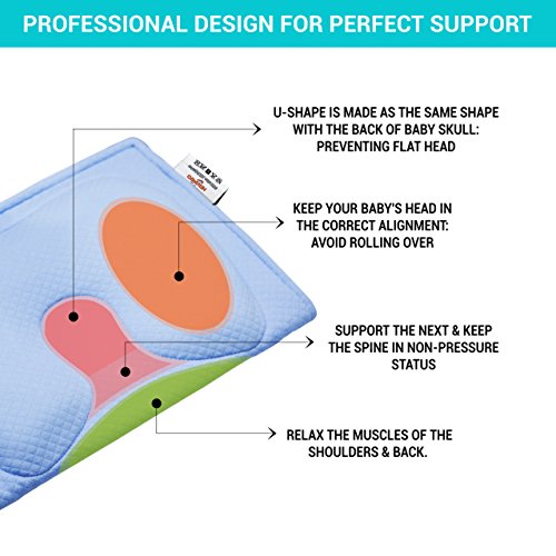 - ❖ PROFESSIONAL DESIGN FOR PERFECT SUPPORT: U-shape is made as the same shape with the back of baby skull, it is best for preventing Flat Head syndrome (Plagiocephaly). The thicker extended areas keep baby’s head in the correct alignment, avoid rolling over. The thinner in the middle supports baby’s neck and keep the spine in non-pressure status. The long pillow helps relax muscles of shoulders and back fully. Your baby will feel really comfortable even in different sleeping positions.