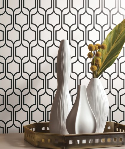 York Wallcoverings KB8652 Bistro 750 Trellis Prepasted Wallpaper, Black / White