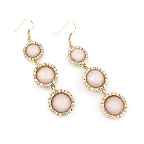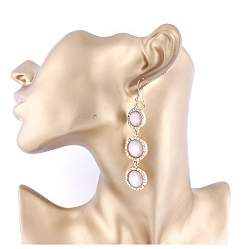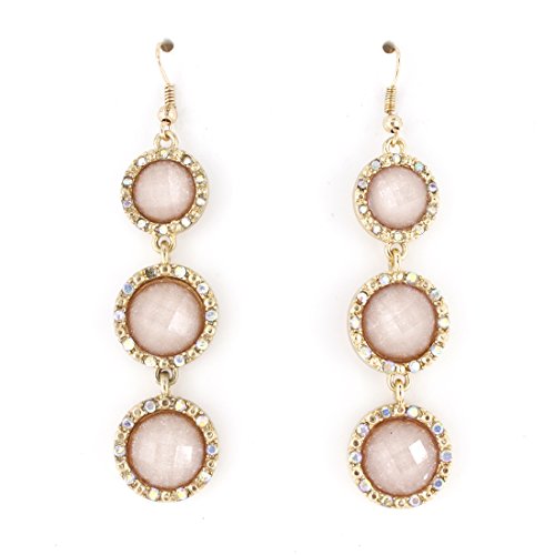 -. Title : Gorgeous Gold-tone Pink Triple Faceted Stones Dangle Drop Earrings