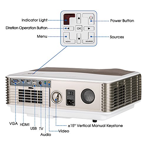 1. HIGH BRIGHTNESS PROJECTOR- 4200 lumens, one of the highest brightness LCD projector in the market. 50% brighter than ordinary led projector. Built-in mercury-free led lamp and eye protection design. Plus, the LED bulb inside can save energy up to 70%.