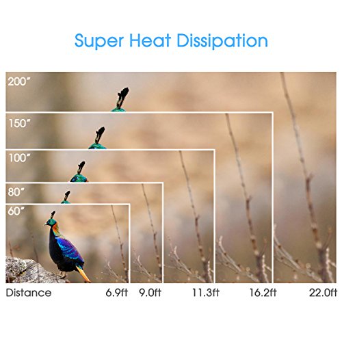 3. BIG SCREEN ENTERTAINMENT- 50"-200" images with a projection distance from 6.56 to 19.69 feet. Advanced Wide angle lens, this provides flexibility to a project large size picture at short distance. Control the size of the picture by changing the distance between the screen and projector.
