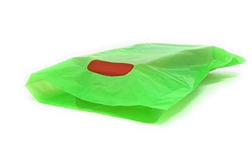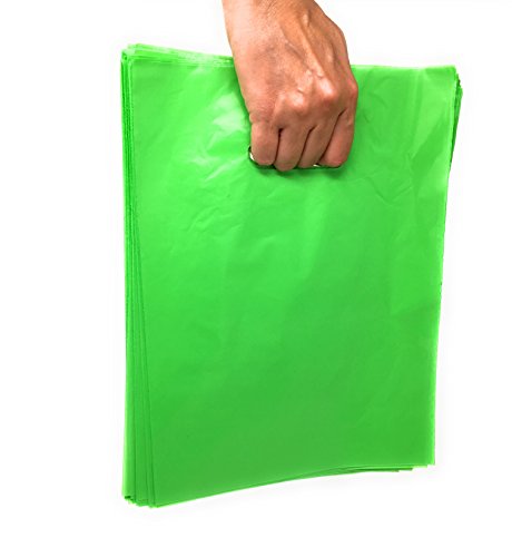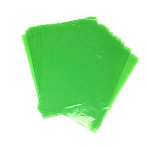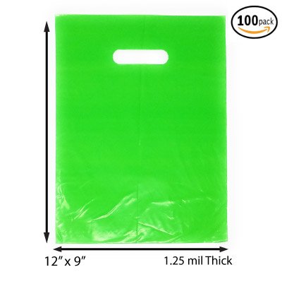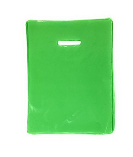 100 Pack 9" x 12" with 1.25 mil Thick Green Merchandise Plastic Glossy Retail Bags | Die Cut Handles | Perfect for Shopping, Party Favors, Birthdays, Children Parties | Color Green | 100% Recyclable