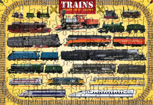 -. Binding : Toy -. Brand : EuroGraphics -. EAN : 0086010339392 -. Feature : Kids Puzzle / Box size: 8" x 8" x 2.37" / Finished Puzzle Size: 13" x 19" / Manufactured using the highest quality blueboard / Made in the USA / Made in the United States / 100% recyclable, safe, non-toxic, and printed with vegetable-based inks and Certified by the Forest Stewardship Council / Printed in Canada, made in the United States / Puzzle pieces are manufactured using the highest quality 0.07" blueboard, offering an exact fit without fraying over time and use / Assembling puzzles improves fine motor skills and picture recognition abilities - promotes both cooperative and independent play -. IsAdultProduct : 0 -. Label : Eurographics - Toys -. Manufacturer : Eurographics - Toys -. Model : EUROKIDS-0090 -. MPN : EG61000090 -. NumberOfItems : 1 -. PackageQuantity : 1 -. PartNumber : EG61000090 -. ProductGroup : Toy -. ProductTypeName : TOYS_AND_GAMES -. Publisher : Eurographics - Toys -. Studio : Eurographics - Toys -. Title : Trains 100 Piece Jigsaw Puzzle -. UPC : 628136610902 -. Warranty : No Warranty
