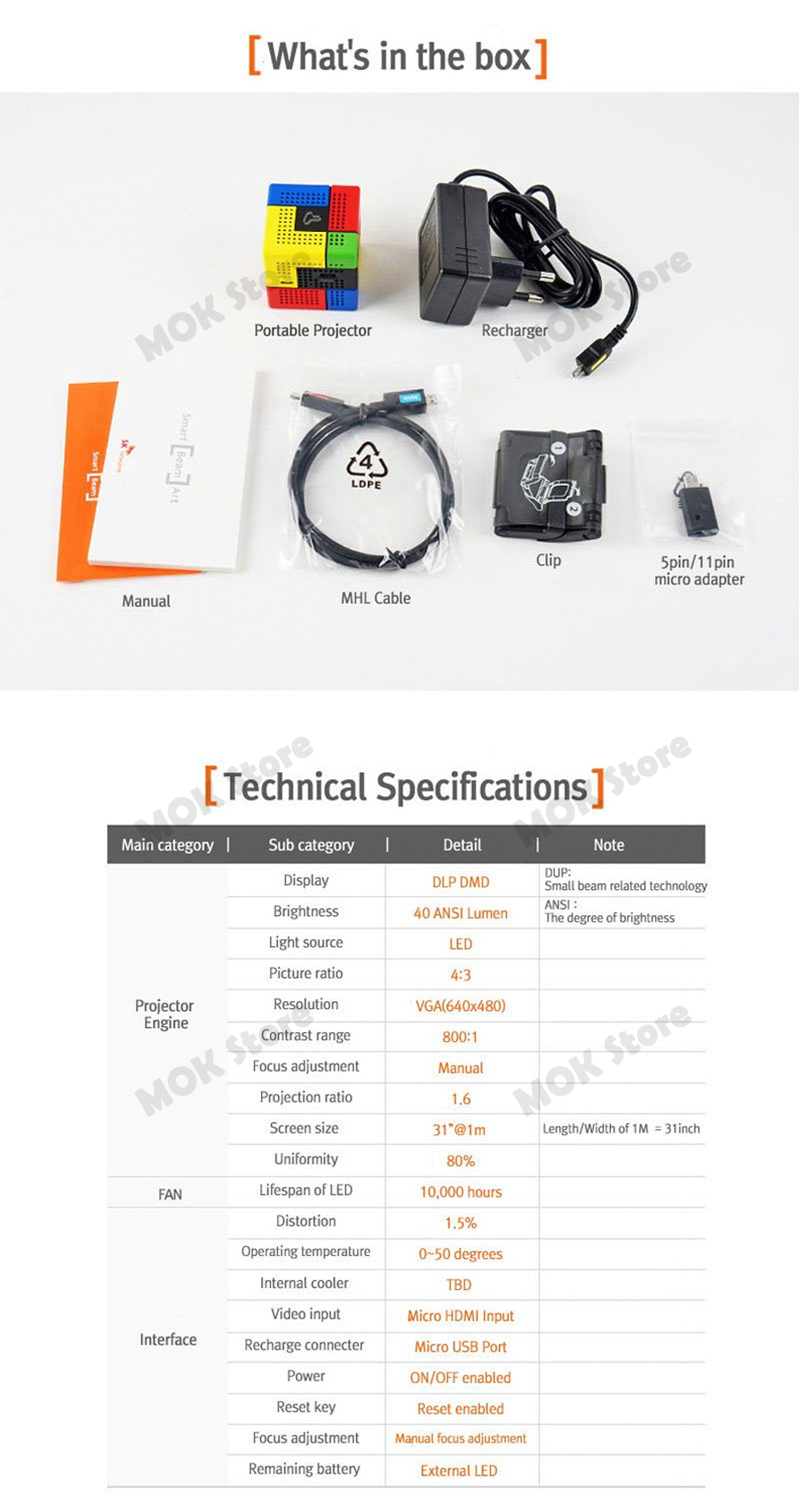 - Product Description : Innoio Innocube / SKT Smart Beam ART IC200C DLP Mobile PICO pocket projector