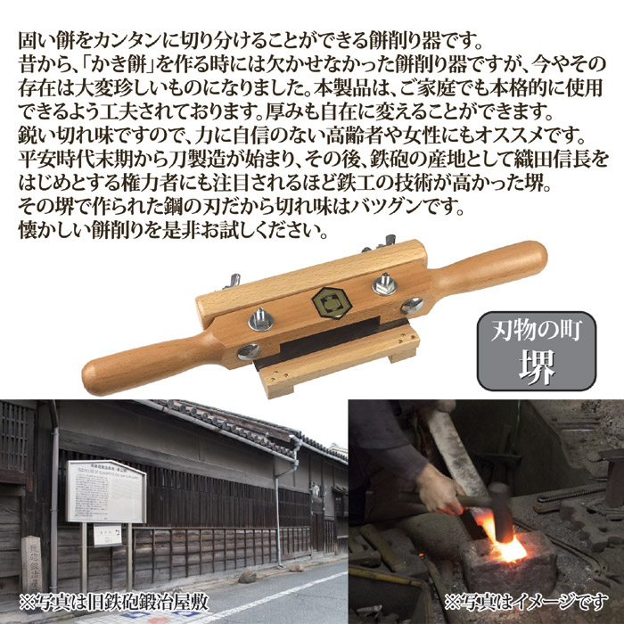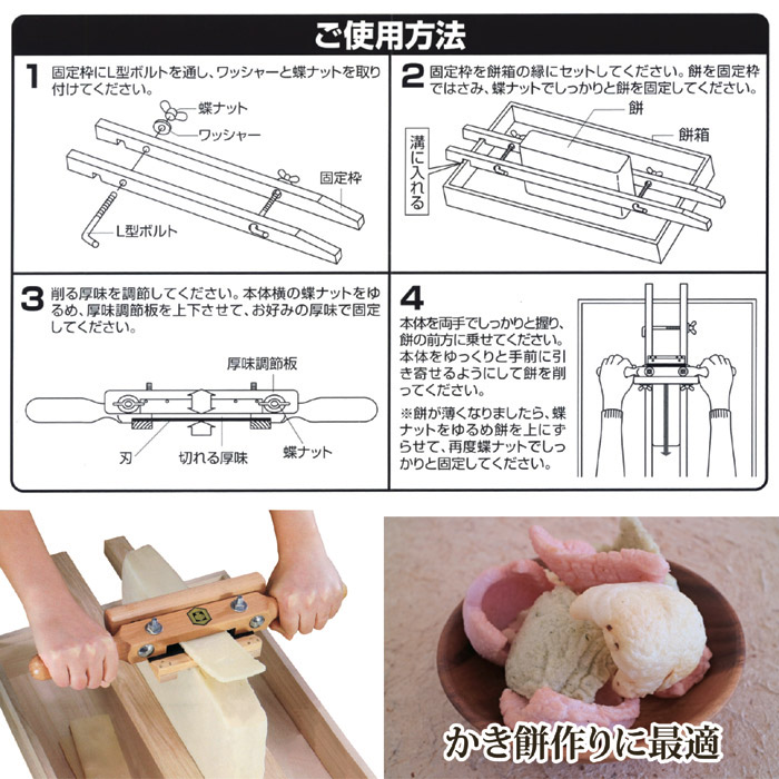 ●固い餅をカンタンに切り分けることができる餅削り器です。