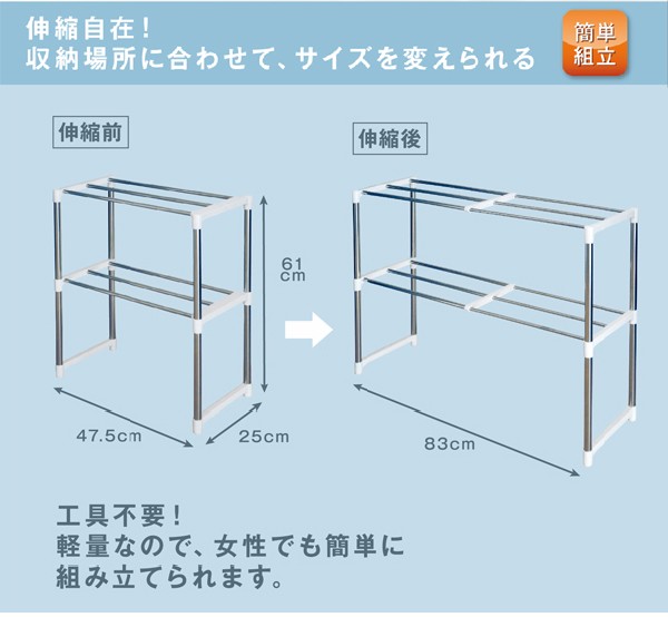 W83×D25×H61cm(伸縮後)