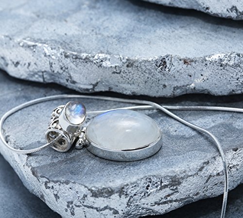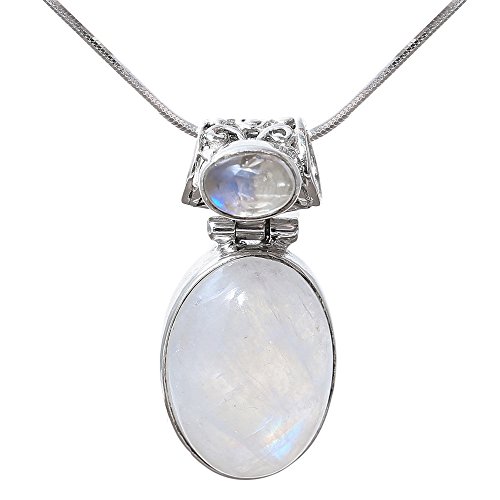 Our rainbow Moonstone pendant showcases the unique beauty of a gemstone that seems to reflect the Radiance of a full moon. The large oval of Moonstone shines with a different color with every turn of your head, making it one of the most versatile accessories in your jewelry box. Pendant measures 1.125-Inch long by 0.56-Inch wide.Feature