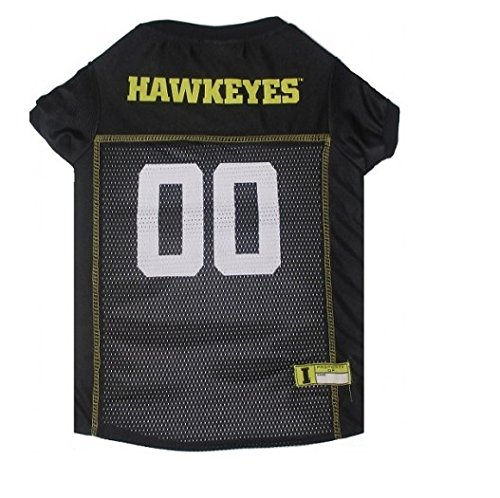 -. Binding : Misc. -. Brand : Pets First -. Feature : Measure the length of your dogs back to determine size / Officially licensed by the NCAA / Measurements: X-Small 6"-9" / Small 8"-12" / Medium 14"-18" / Large 20"-24" / XL 24"-28". / This jersey is constructed of breathable cotton with micro-mesh sides and v-neck cut is stylish and comfortable. / Great Jersey for your family member -. Label : PETS FIRST -. Manufacturer : PETS FIRST -. PackageQuantity : 1 -. ProductGroup : Pet Products -. ProductTypeName : PET_SUPPLIES -. Publisher : PETS FIRST -. Studio : PETS FIRST -. Title : IOWA HAWKEYES Dog Jersey ★ ALL SIZES ★ Licensed NCAA