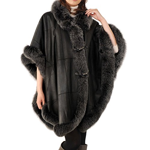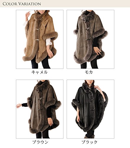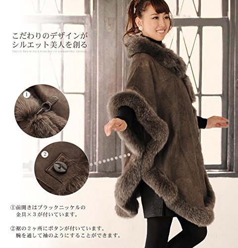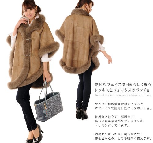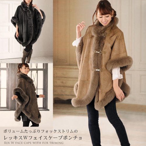 -. Title : レッキス ケープ ポンチョ Wフェイス フォックス トリミング ボレロ 防寒 ファーケープ マント