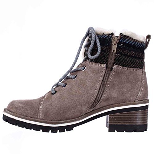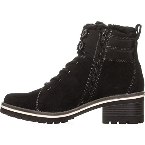 Product DescriptionDetailed cold weather bootie with suede upper, lug sole, lace-up and eyelet details, full tonal side zip, faux fur shearling lined interior details and ak sport hardware0