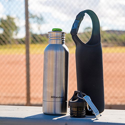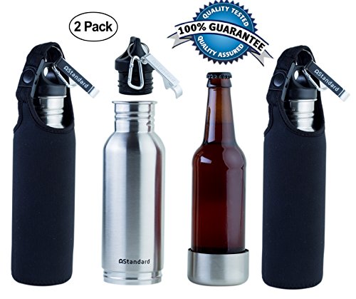 Enjoy Your Beer Ice Cold Every time with the Best Bottle Cooler by AStandard! Are you looking for a high-performance bottle beer cooler that will allow you to enjoy a refreshing, icy cold beer anywhere you go? Then look no further than our premium insulated bottle pouch. Designed to keep your favorite drinks cool for longer, this durable stainless steel bottle beer cooler is the perfect solution for baseball games, parties, outdoor adventures, travels, backyard BBQs, beach outings or friends' gatherings. Our Bottle Insulator has a design that's made to resemble a metal water bottle, allowing you to drink with discretion wherever you go. Say Goodbye to Damp and Frostbitten Hands, and expensive alcohol at games! Lined with high quality, BPA free, neoprene material on the inside and a no sweat design that prevents water condensation from forming, this insulated stainless steel thermos will do its work, without chilling your hands. Suitable for most 12oz drink bottles. Keep Your Bottles Safe and Enjoy Peace of Mind! AStandard steel bottle beer concealer is extremely durable and made to withstand even rough tailgating and go without a hitch for a long time. Now you can bring your glass bottles everywhere you go, without fear of unfortunate accidents! Go Hands Free and Attach Your Beer Bottle Cooler on Your Belt Get your beer bottle chiller together with a free, sleek beer cooler sleeve which also provides extra insulation and carabiner clip and attach the coolie to your belt or bag for the ultimate, hands free convenience! Click Add to Cart Now! 0
