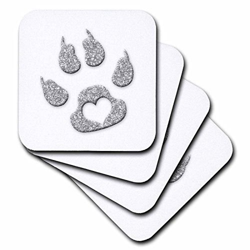 3dRose cst_41072_3 Cats Paw Print with Heart Silver Glitter-Ceramic Tile Coasters, Set of 4