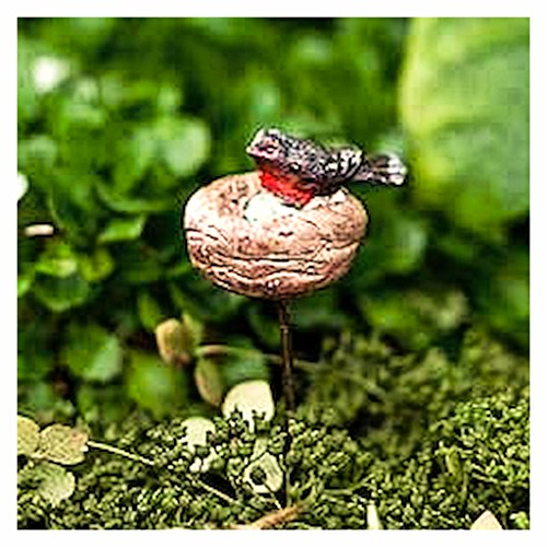Miniature Bird in Her Nest with Eggs - Fairy Garden Pick Mini Village Accessories Pieces Decoration