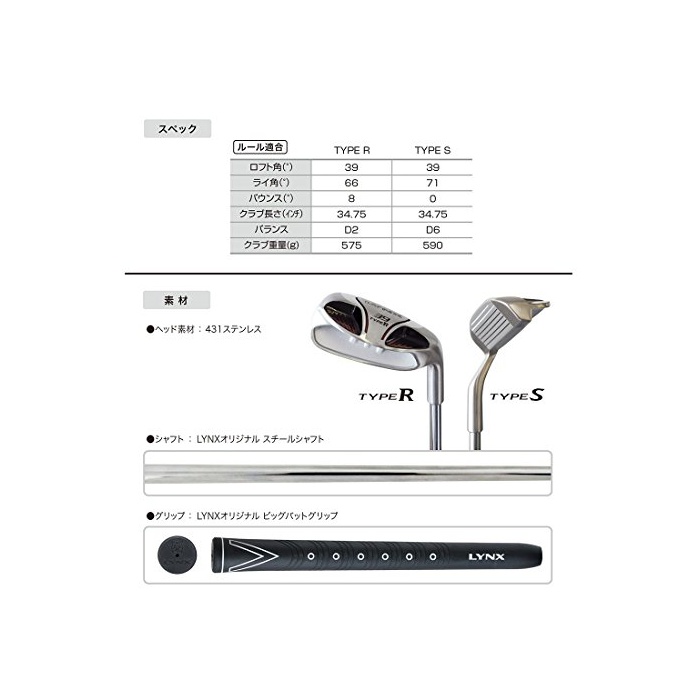 원본상품명: LYNX(リンクス) YS-ONE チッパ TYPE R 2015 LYNXオリジナル スチルシャフト ロフト角:39 ライ角:66度 バウンス角:8度