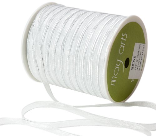 May Arts 1/4-Inch Wide Ribbon, White Sheer with Silver Edge
