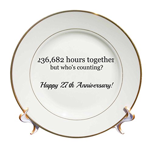 3dRose cp_224672_1 Happy 27th Anniversary 236682 Hours Together Porcelain Plate, 8"