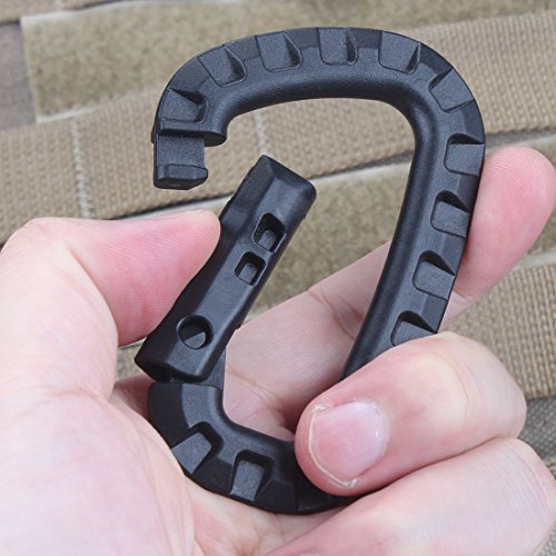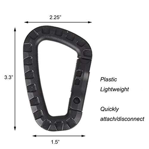 -. Feature : Tactical Multipurpose Big D-Ring Locking, Materials: Plastic / Can be used on any webbing and replaces the metal carabiner for attachment of lanyards, weapons, and accessories / Speed clip as it is, the release button is textured for ease of use with gloved hands and works / Latch design of this hanging hook comes with a detent to maintain an open position if needed and, while strong enough to carry equipment / Used extensively by the Army and Marine Corps