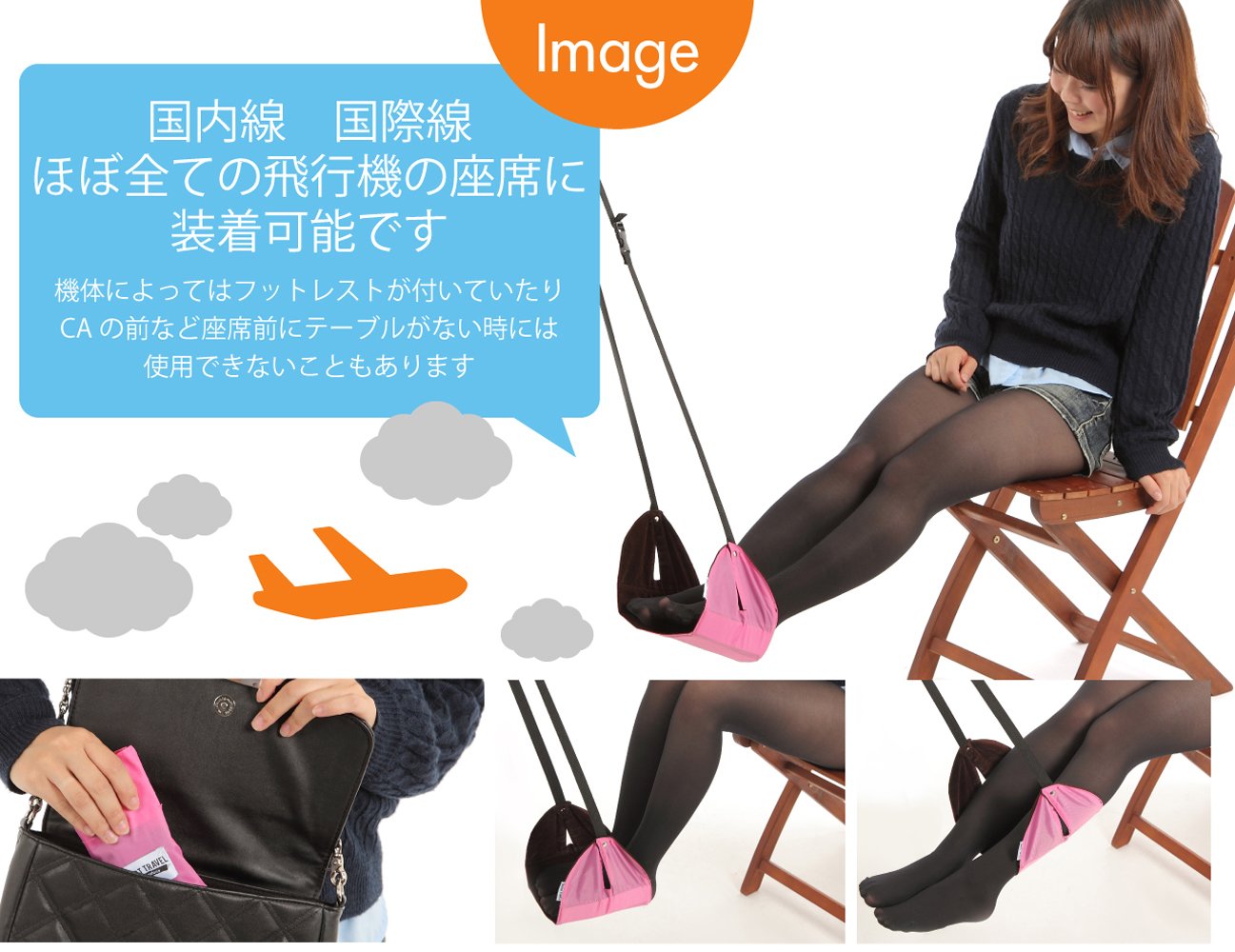 It may be difficult to extend your legs and use it on a seat with no front seat table in the cabin, a cabin / emergency door rear seat, LCC cabin interior, or a seat with a narrow space between the front and the front.