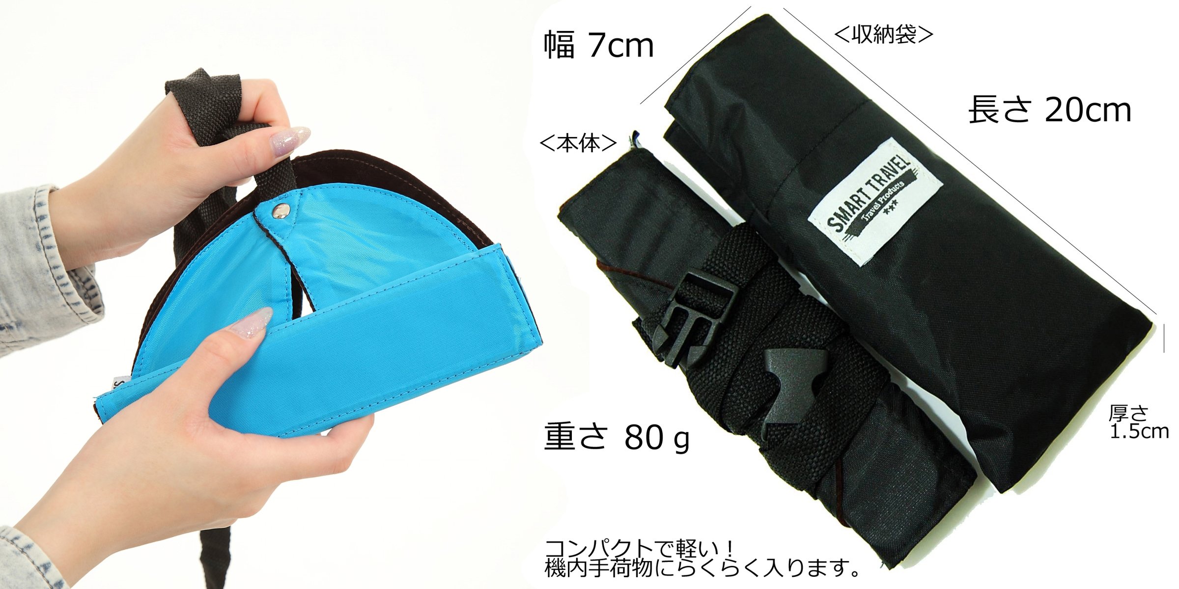 Compact design that does not interfere with in-flight baggage.