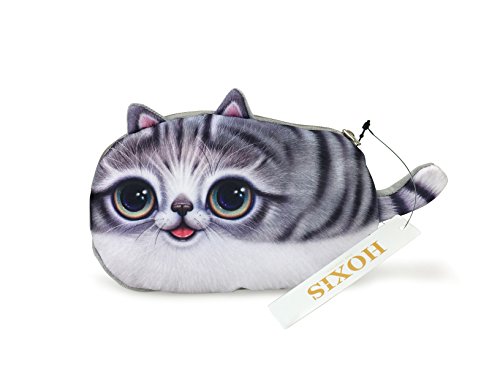 Product Description Cat Kitty Tabby Face Shaped Soft Fabric Zipper Coin Purse Make Up Bag Animal Cats Plush Pouch Furry wallet with zipper in the shape of Animals Perfect as a wallet, make up purse or for bits and pieces very good quality super cute design Stay organized with this super cute kitty cat shaped coin purse! It's made in the shape of a kitty cat with a grumpy expression on its face! Size: The coin purse measures 12 cm wide by 11 cm tall! It is fully lined and closes with a zipper. Material: Cotton Blend Adorable and cuddly! These coin purses are a must for any animal lover! Great for all your change or any small cosmetics you might need. This coin purse features include animal face front with tiny ear details, soft plush backing, soft inner padding, lining, and finished with a zipper closure. 100% Polyester. 0